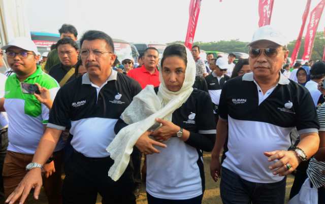 JAKARTA (Pos Sore)-Direktur Utama PT Bank Tabungan Negara (Persero) Tbk Maryono mendampingi Menteri BUMN Rini M. Soemarno meninjau arena Mudik Bersama BUMN 2018 di Pantai Carnaval Ancol, Jakarta Utara, Sabtu (9/6). Tahun ini Bank BTN berkontribusi memberangkatkan lebih dari 1.520 orang ke kampung halamannya seperti Solo, Surabaya, Purwokerto dan Yogyakarta. Jumlah peserta Mudik Bareng BTN tahun ini meningkat 3 kali lipat dibandingkan tahun 2017. Para pemudik tersebut sebagian adalah pekerja di sektor properti dan pekerja informal. Program tahunan ini merupakan bentuk apresiasi Bank BTN bagi para nasabah dan masyarakat dalam menyukseskan program BUMN Hadir untuk Negeri.Bambang Tri P