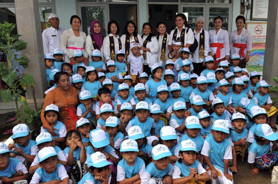 BANGLI (Pos Sore) — Tujuh istri kabinet kerja yang tergabung dalam Organisasi Aksi Solidaritas Era (OASE) Kabinet Kerja (KK) melakukan sosialisasi konvergensi pencegahan stunting dengan mengunjungi PAUD Semara Murti sebagai percontohan pencegahan stunting di Desa Pengotan, Kabupaten Bangli, Provinsi Bali, Kamis (22/8).