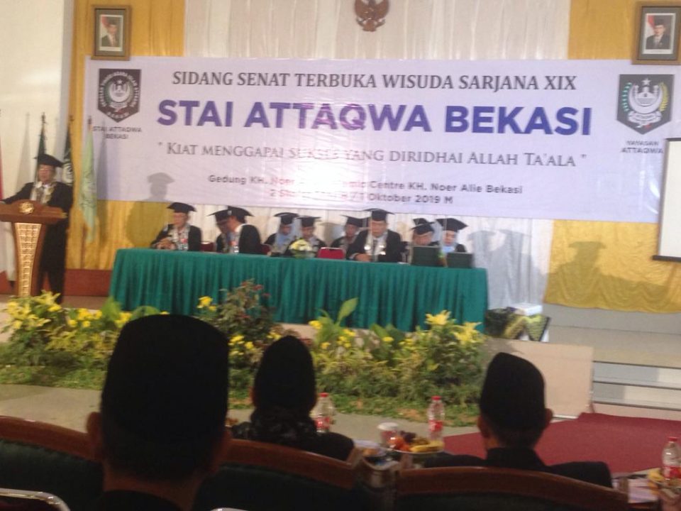 Sebelumnya, Ketua STAI Attaqwa KH. M Abid Marzuki, M. Ed dalam sambutannya melaporkan tahapan-tahapan program STAI Attaqwa yang akan dilalui hingga 2035. Dikatakan, lembaga pendidikan yang dia pimpin saat ini mengemban wasiat dari almaghfurlah KH Noer Alie yang menginginkan STAI Attaqwa menjadi seperti Universitas Al-Azhar Kairo di Mesir.