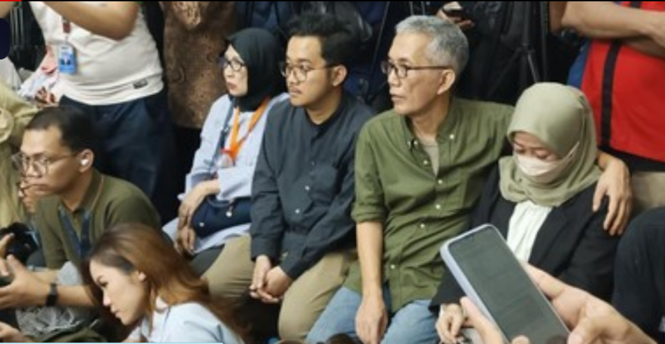 Ibu dan ayah Delpedro saat menghadiri sidang praperadilan di PN Jaksel, Senin (27/10).//Foto: CNN