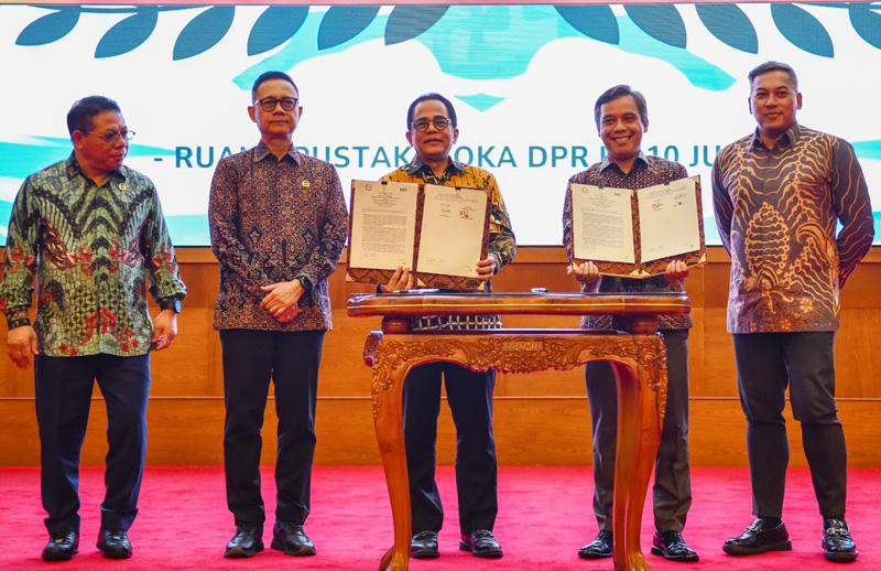 JAKARTA (Possore.id) -Direktur Utama BTN Nixon LP Napitupulu bersama Sekretaris Jenderal DPR RI Indra Iskandar menandatangani Perjanjian Kerja Sama antara BTN dan Sekretariat Jenderal (Setjen) DPR RI terkait Penyediaan Layanan Jasa Perbankan disaksikan oleh Direktur Network & Retail Funding BTN Rully Setiawan, Kepala Badan Keahlian Setjen DPR RI Inosentius Samsul, dan Deputi Bidang Administrasi Setjen DPR RI Sumariyandono, di Gedung Nusantara IV, Kompleks Parlemen Senayan, Jakarta, Selasa (10/6). BTN menggandeng Setjen DPR RI terkait kerja sama Penyediaan Layanan Jasa Perbankan seperti pengelolaan gaji Pegawai Pemerintah dengan Perjanjian Kerja (P3K) dan akses ke produk perbankan seperti kredit ringan, Kredit Pemilikan Rumah (KPR), dan produk investasi BTN.