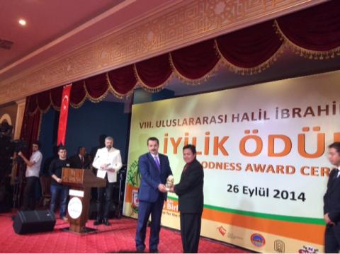 Penghargaan diserahkan langsung oleh Menteri tenaga kerja, Faruk Çelik kepada Agung Notowiguno, Presiden PKPU, yang disaksikan Wakil Perdana Republik Turki, jajaran pejabat pemerintah, undangan negara sahabat dan masyarakat.