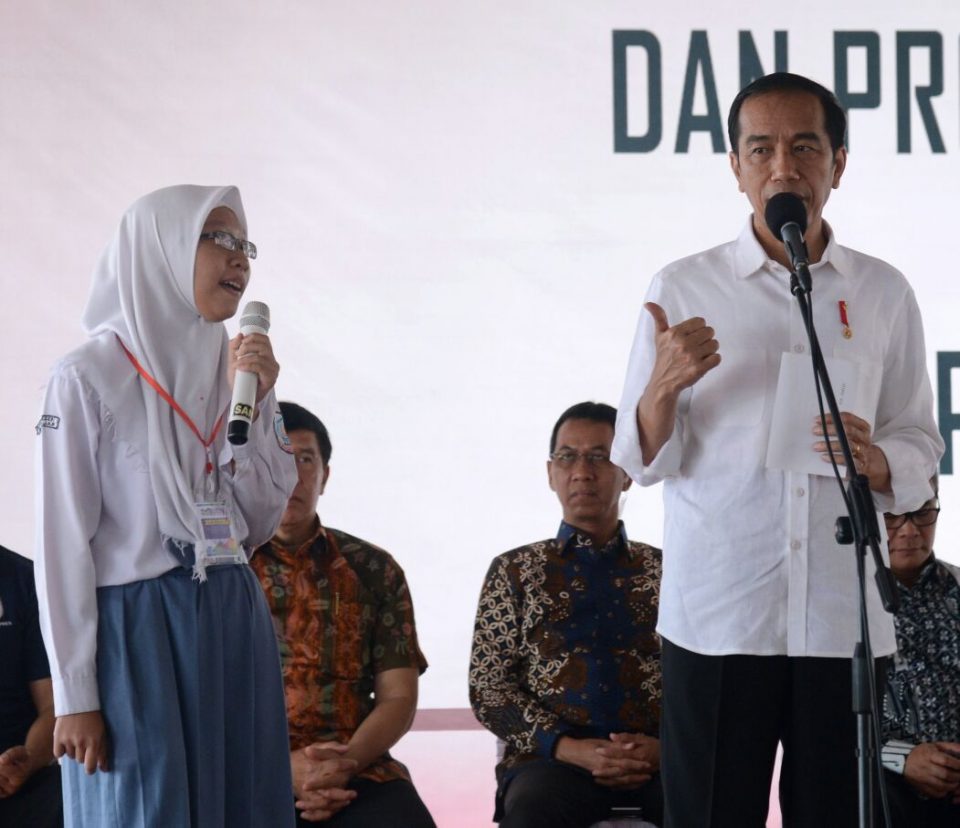Bersamaan dengan penyerahan bantuan PKH, Kepala Negara juga menyerahkan bantuan bagi para pelajar tingkat SD hingga SMA/SMK serta bagi pelajar yang mengikuti program kelompok belajar (Kejar) paket A, B, dan C melalui penyerahan Kartu Indonesia Pintar (KIP).