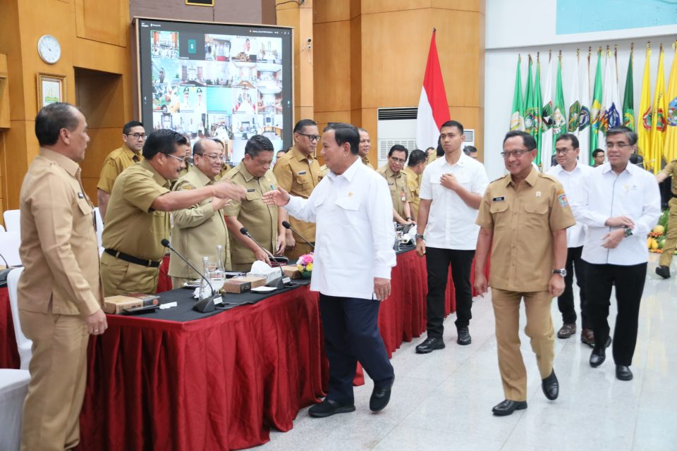 JAKARTA, PosSore.id — Presiden Prabowo Subianto bersama Menteri Dalam Negeri Tito Karnavian, Menteri Ketenagakerjaan Yassierli, Menteri Pertanian Amran Sulaiman, Menteri Perdagangan Budi Santoso, serta seluruh Penjabat Gubernur, mengadakan Rapat Koordinasi Pengendalian Inflasi dan Sosialisasi Kebijakan Upah Minimum Tahun 2025.
