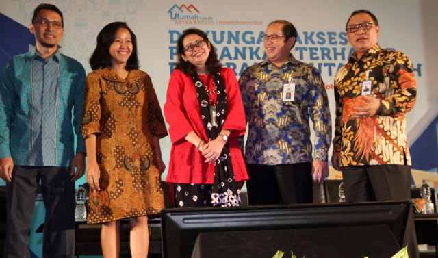 JAKARTA (Pos Sore)-Direktur Utama PT Bank Tabungan Negara (Persero) Tbk Maryono (kanan) berbincang dengan Dirjen Pembiayaan Perumahan Kementerian Pekerjaan Umum dan Perumahan Rakyat Lana Winayanti (tengah), Dirjen Kekayaan Negara Kementerian Keuangan Isa Rachmatawarta (kedua kanan), Perencana Keuangan OnShildt Agustina Fitri (kedua kiri) dan Pengamat properti dari Collier International Ferry Salanto (kiri) disela seminar Rumah Layak Untuk Rakyat bertema “Dukungan Akses Perbankan Terhadap Program Sejuta Rumah” di Jakarta, Selasa (19/12/2017). Prospek properti 2018 diyakini masih memberikan peluang bagi industri terkait dengan pembangunan perumahan. Bank BTN memberikan komitmennya untuk  mendukung pencapaian program sejuta rumah 2018 dengan melakukan sejumlah strategi, antara lain dengan mengoptimalkan penyaluran kpr subsidi, kpr mikro dan bersinergi dengan pengembang, BUMN dan instansi Pemerintah serta mitra swasta untuk mewujudkan rumah layak untuk rakyat.Bambang Tri P.