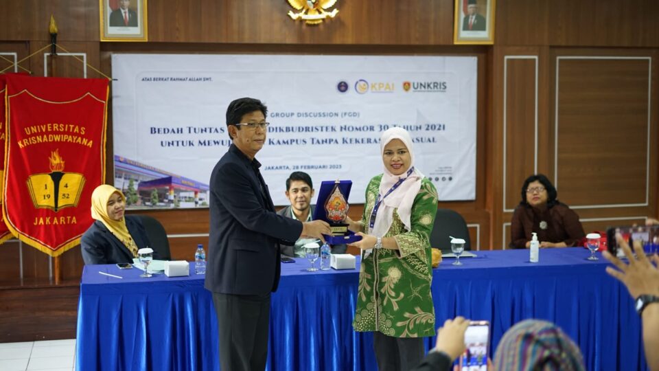 FGD yang dimoderatori Yessy Kusumadewi, SH, MH, ini diselenggarakan oleh Satuan Tugas Pencegahan dan Penanganan Kekerasan Seksual (Satgas PPKS) Universitas Krisnadwipayana (Unkris) bekerjasama dengan Komisi Perlindungan Anak Indonesia (KPAI) di Ruang Rapat Rektorat.