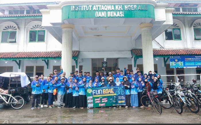 BEKASI, PosSore – Menyambut bulan suci Ramadhan dengan semangat kebersamaan, Institut Attaqwa KH Noer Alie (IAN) menggelar acara fun bike yang diikuti sekitar 60 peserta. Para dosen dan mahasiswa program pascasarjana berkumpul di halaman Kampus Pahlawan Nasional, IAN, untuk bersepeda santai dalam suasana penuh keceriaan. Acara yang dilepas langsung oleh Ketua Umum Yayasan Attaqwa, Dr. KH. Irfan Masud, MA, ini dimulai dengan rute menyusuri kawasan Bekasi yang penuh makna.