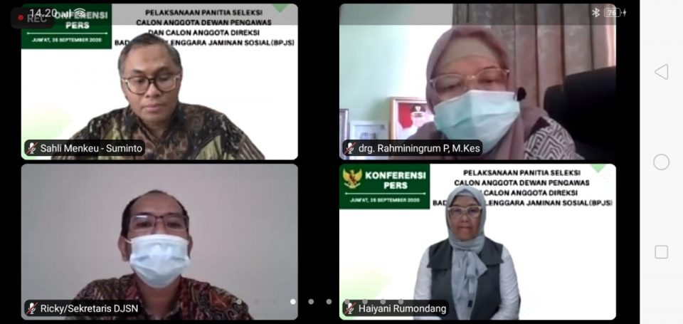 “Pansel BPJS kesehatan dan Ketenagakerjaan masing-masing beranggotakan 7 orang, terdiri dari 2 orang unsur Pemerintah dan 5 orang unsur masyarakat,” ucap Suminto Staff Ahli Kementerian Keuangan, yang juga Ketua Panitia Seleksi BPJS kesehatan, saat konferensi pers daring, Jumat (25/9/2020).