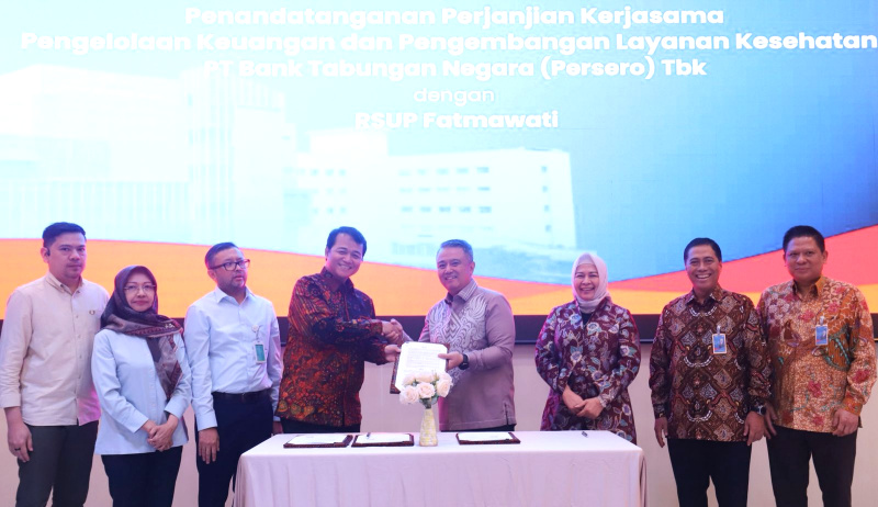 POSSORE.ID,JAKARTA-Wakil Direktur Utama BTN, Oni Febriarto Rahardjo (empat dari kanan), dan Direktur Utama RSUP Fatmawati, dr. Wahyu Widodo, Sp.OT(K) (empat dari kiri), berjabat tangan usai menandatangani perjanjian kerja sama Program BTN Solusi serta pengembangan layanan kesehatan RSUP Fatmawati. Penandatanganan ini turut disaksikan oleh Direktur Commercial Banking BTN, Hermita (tiga dari kanan), Direktur Consumer Banking BTN, Hirwandi Gafar (dua dari kanan), serta SEVP Digital Business BTN, Thomas Wahyudi (paling kanan). Dari pihak RSUP Fatmawati, hadir Direktur Medik dan Keperawatan, dr. Muhammad Azhari Taufik, Sp.An-TI, Subsp.TI(K) (kiri); Direktur SDM, Pendidikan, dan Penelitian, Dr. Dra. Vivi Lisdawati, M.Si., Apt (dua dari kiri); serta Direktur Layanan Operasional, dr. Aldrin Neilwan P., Sp.AK(K), MARS, M.Biomed, M.Kes (tiga dari kiri). Rabu (22/4/2026).Kerja sama ini menjadi langkah strategis dalam memperkuat transformasi layanan kesehatan yang modern, efektif, transparan, dan terintegrasi, sejalan dengan upaya digitalisasi layanan di lingkungan RSUP Fatmawati. Kolaborasi ini juga mencakup pemanfaatan layanan perbankan untuk mendukung kemudahan transaksi keuangan, pengelolaan dana operasional, serta peningkatan efisiensi layanan bagi pegawai dan unit kerja di lingkungan RSUP Fatmawati. B. Tri Prasetyo.