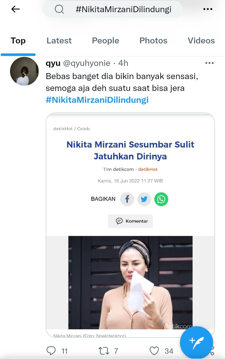 Tagar #NikitaMirzaniDilindungi ini pun ditanggapi banyak warganet. “Orang suka bikin rusuh dan aku domba emg harus ditangkap biar gak sok kebal hukum,” tulis Gendhis Jawa.