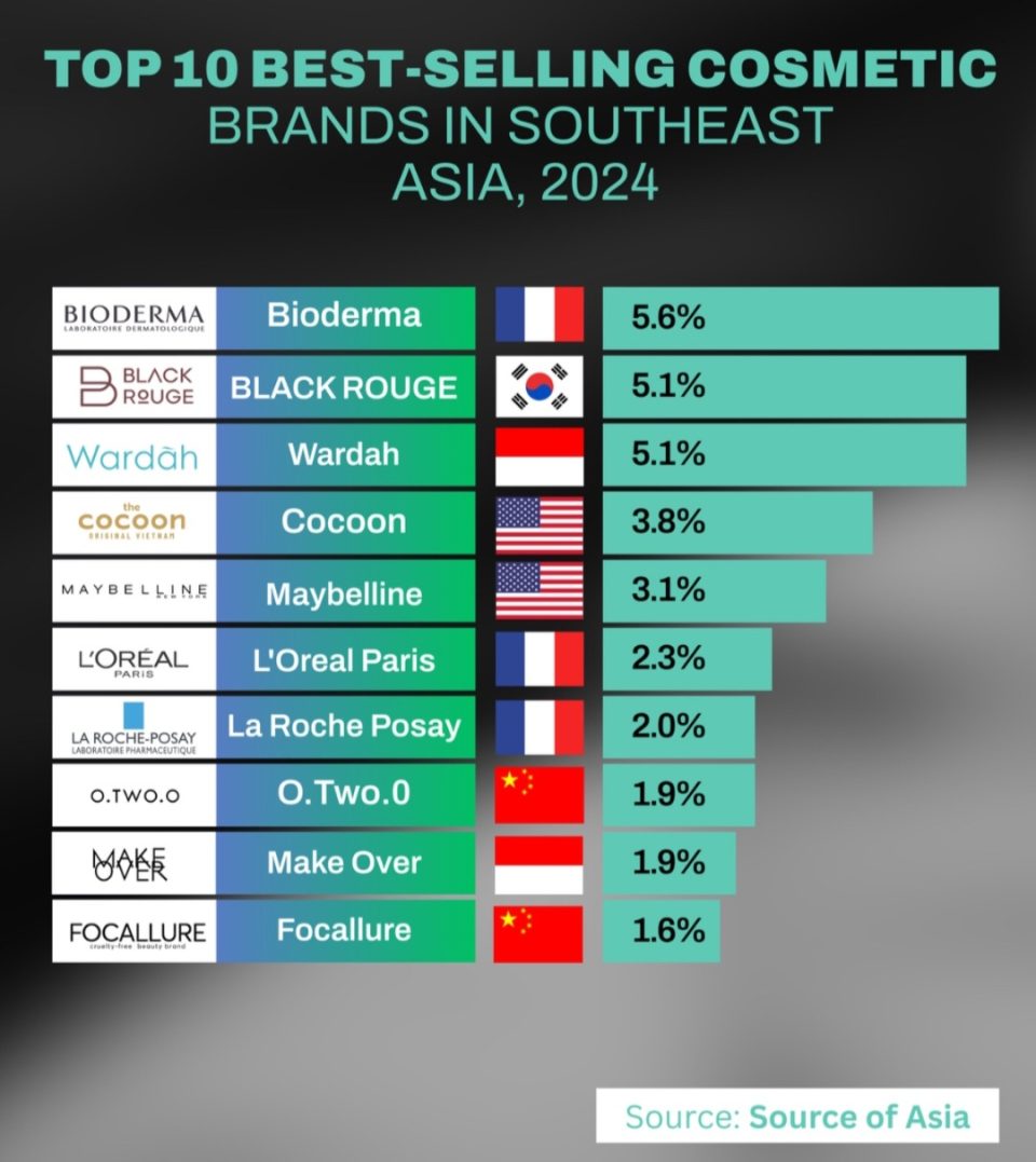 turut masuk dalam daftar Top 10 Best-Selling Cosmetic Brands in Southeast Asia 2024