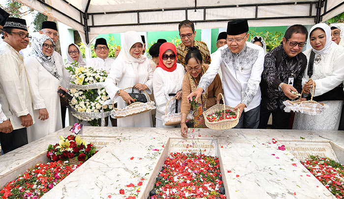 JAKARTA (Pos Sore.co) – Gubernur Propinsi Bengkulu Rohidin Mersyah didampingi Putri Bung Karno, Sukmawati beserta beberapa keluarga dan perwakilan dari BTN, Kepala Divisi Syariah Alex Sofyan Noer melakukan ziarah ke makam Fatmawati sebagai pahlawan nasional yang menjahit bendera pusaka merah putih, di Jakarta, Selasa (13/8/2019). Ziarah ini merupakan rangkaian prosesi yang dilakukan terkait dengan pembangunan monumen sejarah berupa patung Fatmawati yang akan dibangun di kota Bengkulu. Ground breaking monumen tersebut menurut rencana akan dilaksanakan bersamaan dengan kegiatan BUMN Hadir Untuk Negeri di wilayah Bengkulu pada saat HUT ke74 RI yang dikoordinir penyelenggaraannya oleh Bank BTN. B.Tri Prasetyo